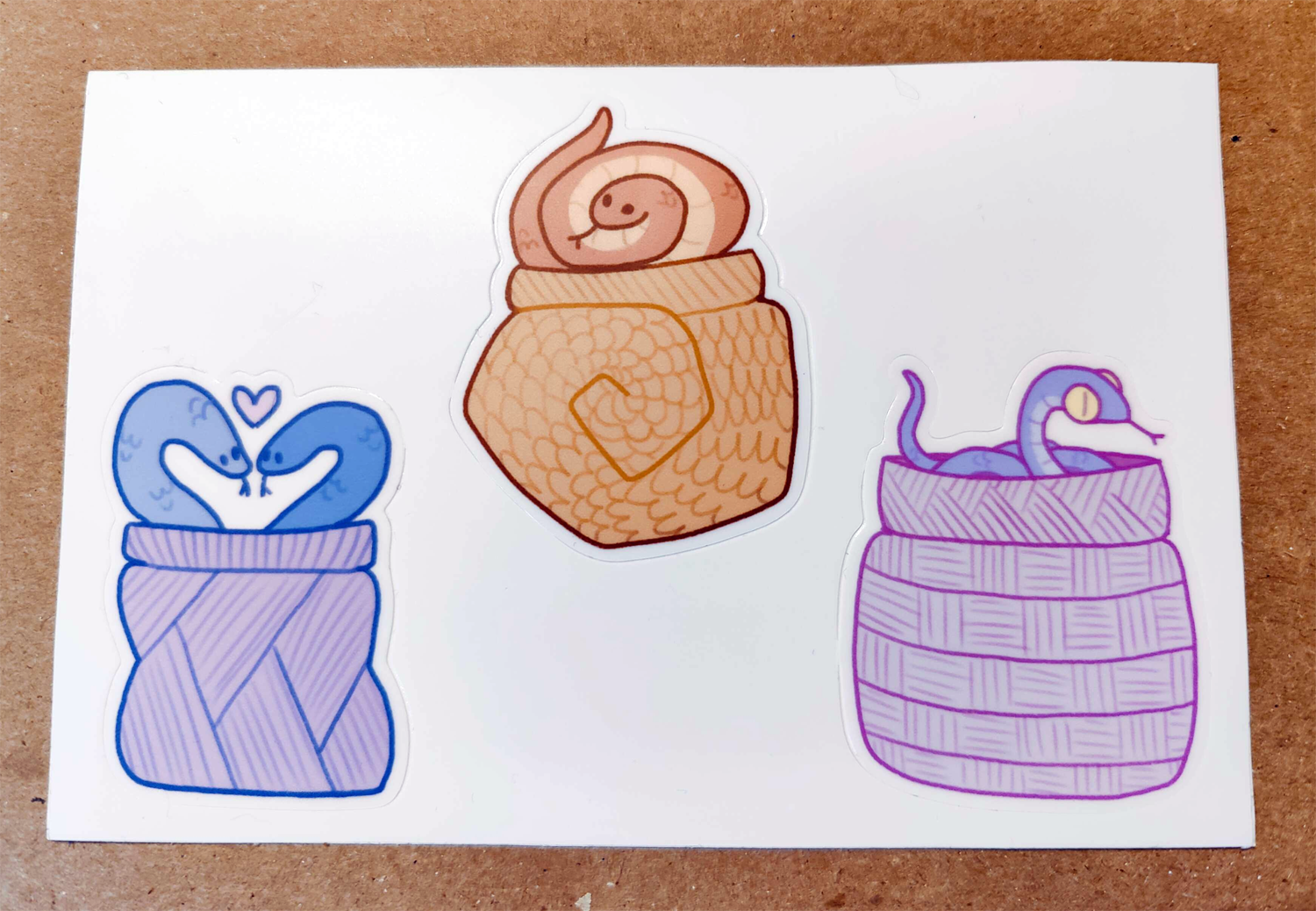 This is a 4x6", die-cut sticker sheet printed on durable vinyl. They're pretty weather-resistant, but I wouldn't run them through the dishwasher.